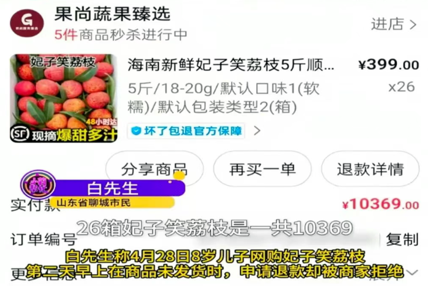 荔枝季正当时,电商网购乱象层出不穷。近日,山东聊城一起由8岁孩童网购荔枝的消费纠纷引发社会广泛关注。
