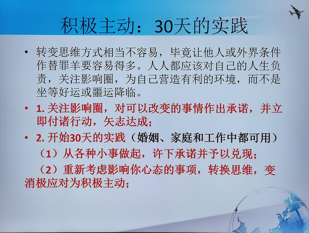 他列举了几个身边真实的案例,通过这种更有代入感的方式让学员来体会积极心态所带来的力量,并且给出了切实有效的建议方案,鼓励大家去尝试和学习。