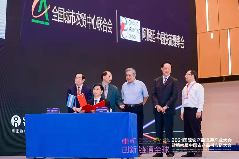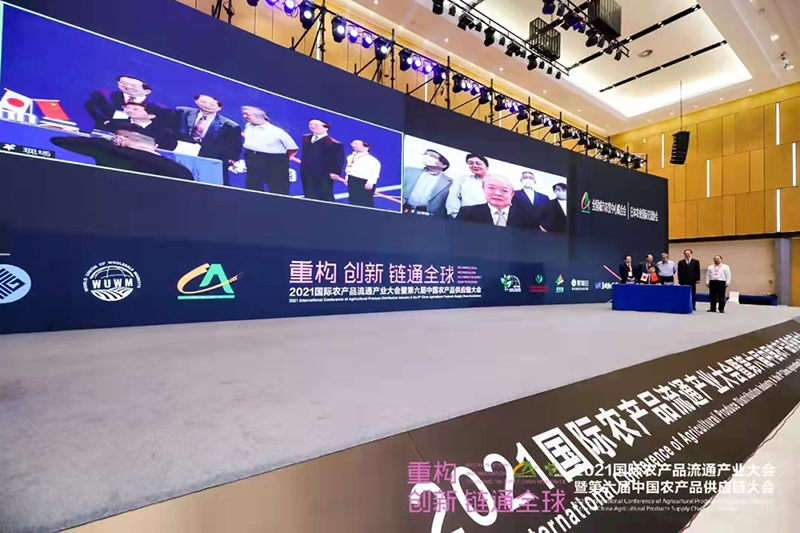 2021年10月12日——14日,由全国城市农贸中心联合会与世界批发市场联合会亚太地区工作组联合主办的“2021国际农产品流通产业大会暨第六届中国农产品供应链大会”在江苏白马农业国际博览中心顺利召开。相关政府部门领导、相关商协会领导、国际专家、世界知名市场负责人,以及30多个国家和地区的驻华使节和行业代表近800人参会。
