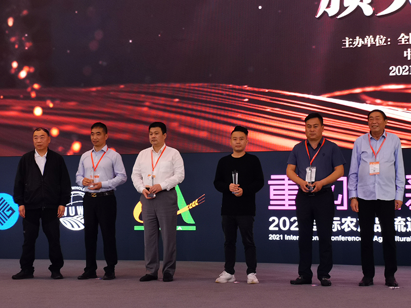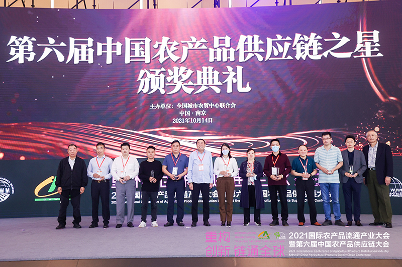 10月14日中午十一点,博览中心一层大厅举办第六届中国农产品供应链之星颁奖典礼,全国城市农贸中心联合会副会长兼秘书长纳绍平先生主持典礼。我司荣获2021年度中国农产品供应链之星称号,公司董事长陶来富先生上台领奖。