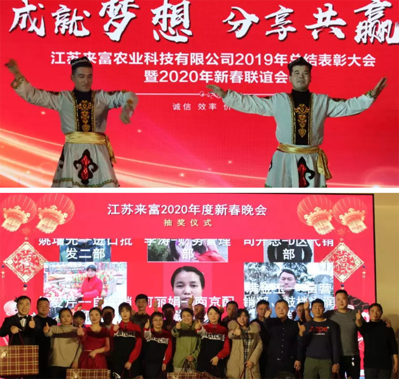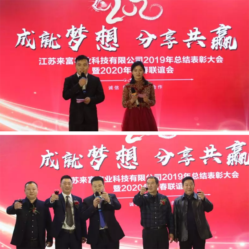 2020年1月7日星期二,“成就梦想 分享共赢”——江苏来富农业科技有限公司举办2019年总结表彰大会暨2020年新春联谊会在青龙山庄召开。董事长陶来富携夫人唐礼美女士、董事陶炯良及各部门主管和员工代表参加了此次庆典。
