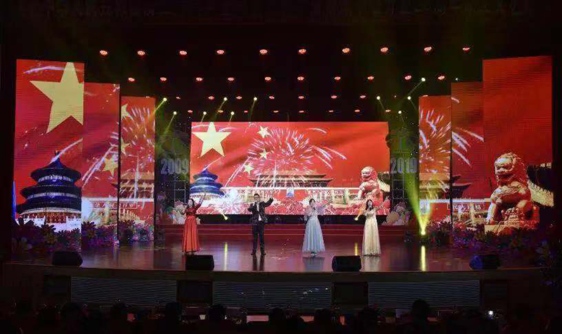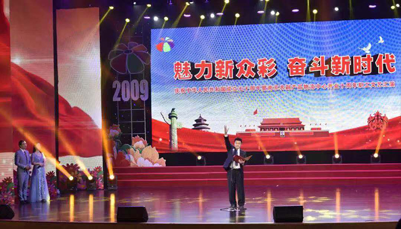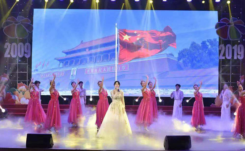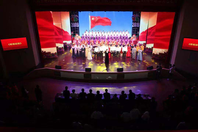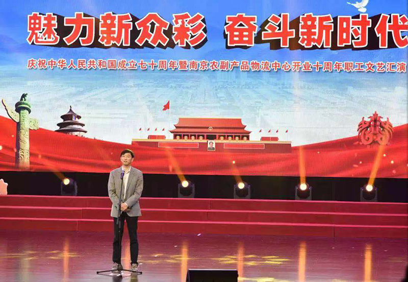 汇演最后,全体起立,共同高唱《歌唱祖国》,大家用嘹亮的歌声、优美的舞姿和澎湃的激情,热烈庆祝中华人民共和国成立70周年,庆祝农副物流10周年生日快乐!