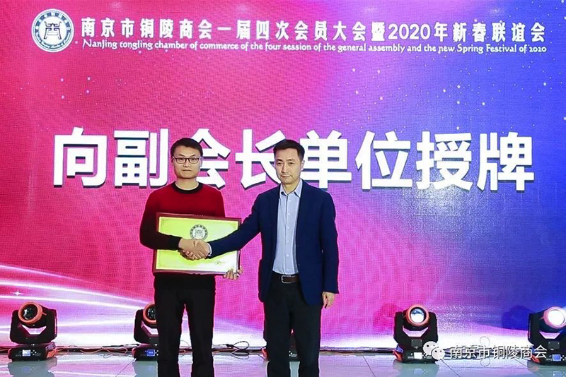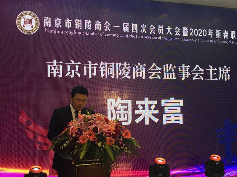 2019年12月14日下午,“不忘初心·携手铜行”—南京市铜陵商会一届四次会员大会暨2020年新春联谊会在南京世纪缘湖滨花园酒店隆重举行。江苏来富农业科技有限公司董事长陶来富作为商会监事会主席出席此次会议并发表讲话。南京军区原副参谋长张中华将军,铜陵市人大常委会副主任汪宜武,枞阳县委副书记、县长杨如松,南京市工商联副巡视员卞文佐、民政局审批处副处长张小勇,我会高级顾问张复平、焦贤富、程胜、胡锦春、丁剑和兄弟商会的会长、秘书长,商会会员及各界铜陵籍代表近350人出席了这次盛会。
