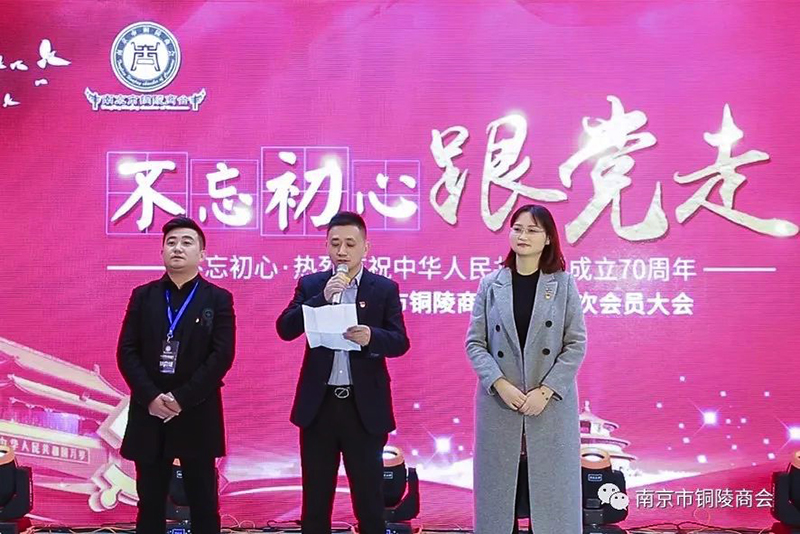 大会在庄严的国歌声中拉开序幕。首先,南京市铜陵商会会长纪良国作2019年商会工作报告。他说,商会已成立了四个年头,在南京、铜陵两地领导等相关部门的关心支持下,在全体会员的共同努力下,各项工作有条不紊的推进和落实,取得了一定的成果。商会被评为南京市优秀五星级“四好”商会,还荣获了“南京市工商联系统会务信息工作先进单位三等奖”。他指出,2019年,商会夯实基础、健全制度,商会规范建设不断完善;加强合作、拓宽交流,商会良好形象不断彰显;走访考察、学习借鉴,商会宣传质效不断提升;加强党建、强化培训,商会战斗堡垒不断加强。他强调,2020年是我国实现第一个百年目标,全面建成小康社会的收官之年,也是国家大力支持民营企业高质量发展的重要一年。商会在新的一年里将继续发挥“树形象、建桥梁、聚人气、优服务”的作用,紧密联系会员,积极开展各类有益的社会活动,真正把商会打造成党委和政府的助手、广大会员的“娘家”、合作共赢的平台。