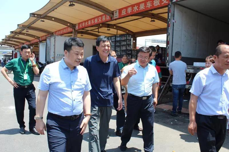江苏来富农业科技有限公司董事长陶来富、商超部执行总经理许明华、市场部执行总经理吴康等陪同考察团一行参观、调研了南京众彩农产品物流园区、江苏来富农业科技有限公司各果品档口,与董事长陶来富详细交流,了解园区运行管理模式、市场开拓等情况。